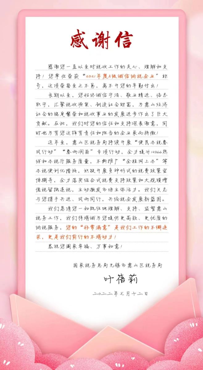+返回上一頁(yè) 錫容電力榮獲”2021年A級(jí)誠(chéng)信納稅企業(yè)“ 發(fā)布時(shí)間:2022-07-19 10:41:17來(lái)源:無(wú)錫市錫容電力電器有限公司點(diǎn)擊:4436 分享到:0 下一篇:無(wú)錫市錫容電力電器有限公司新網(wǎng)站改版成功